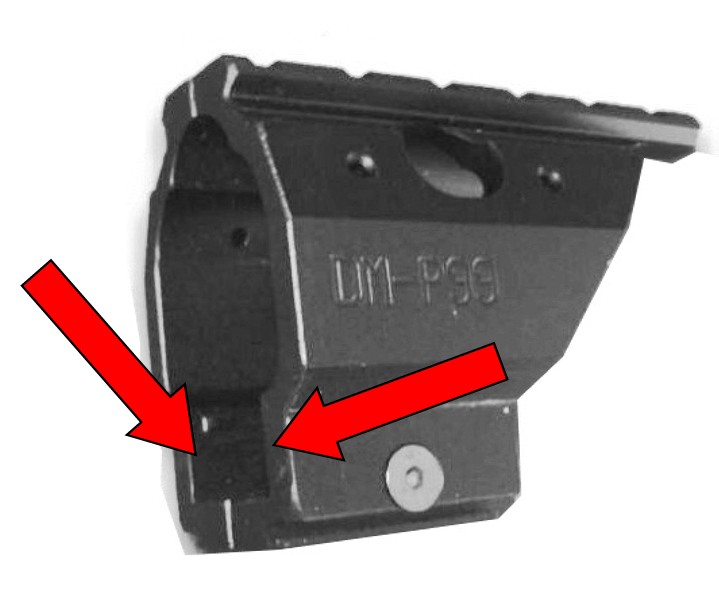 Il faut limer un peu de matière aluminium à l'interieur de chaque cotés, dans la partie basse au niveau de l'emplacement du rail, pour que la réplique puisse passer.
