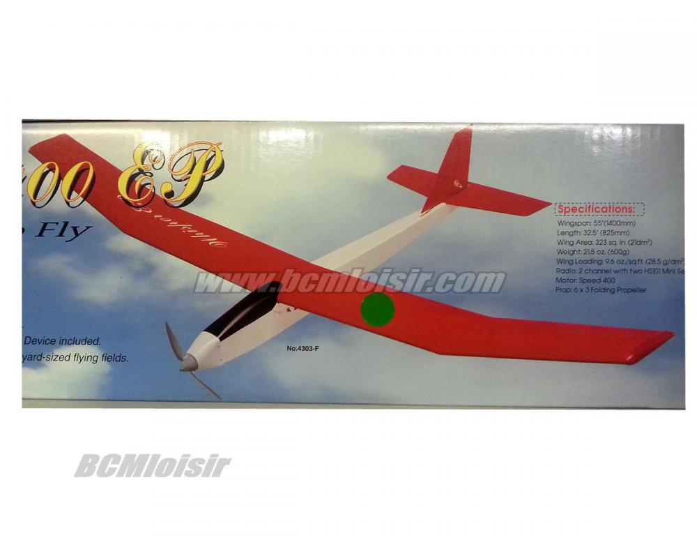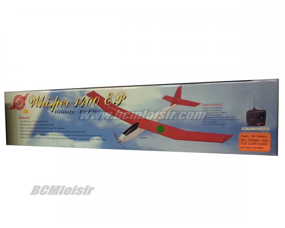 Le Whisper 1400 est un planeur RC électrique doté d'un moteur de type 400 qui permet des vols dépassant 30mn.