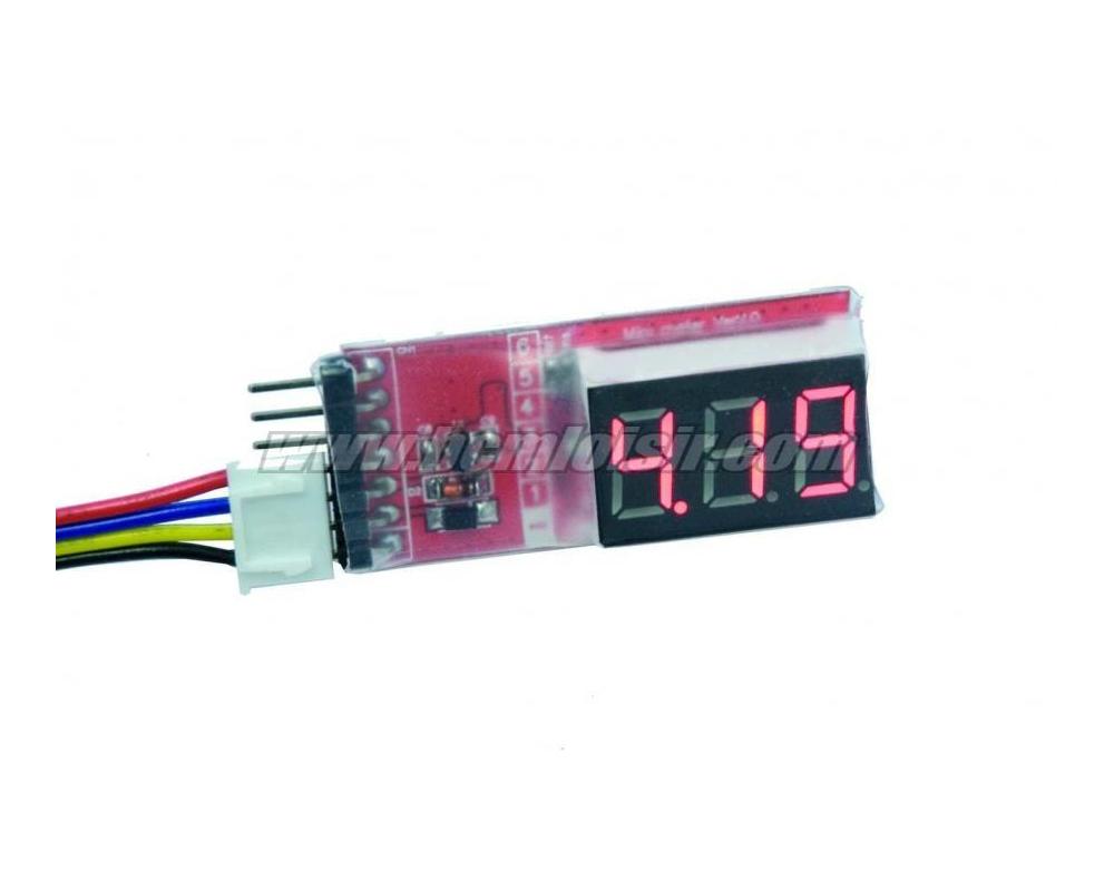 Ce petit appareil électronique est très utile pour mesurer en toute circonstance la tension totale et de chaque élément de vos batteries Li-Po, Li-Fe et Li-Ion jusqu'à 6S.