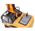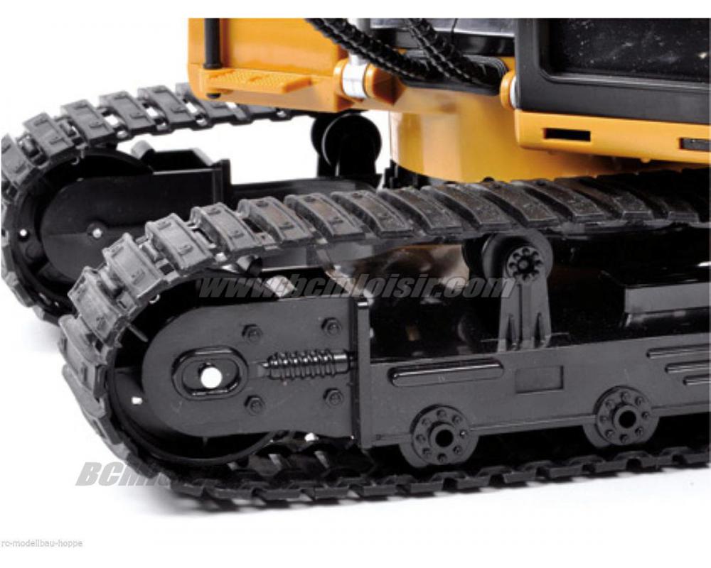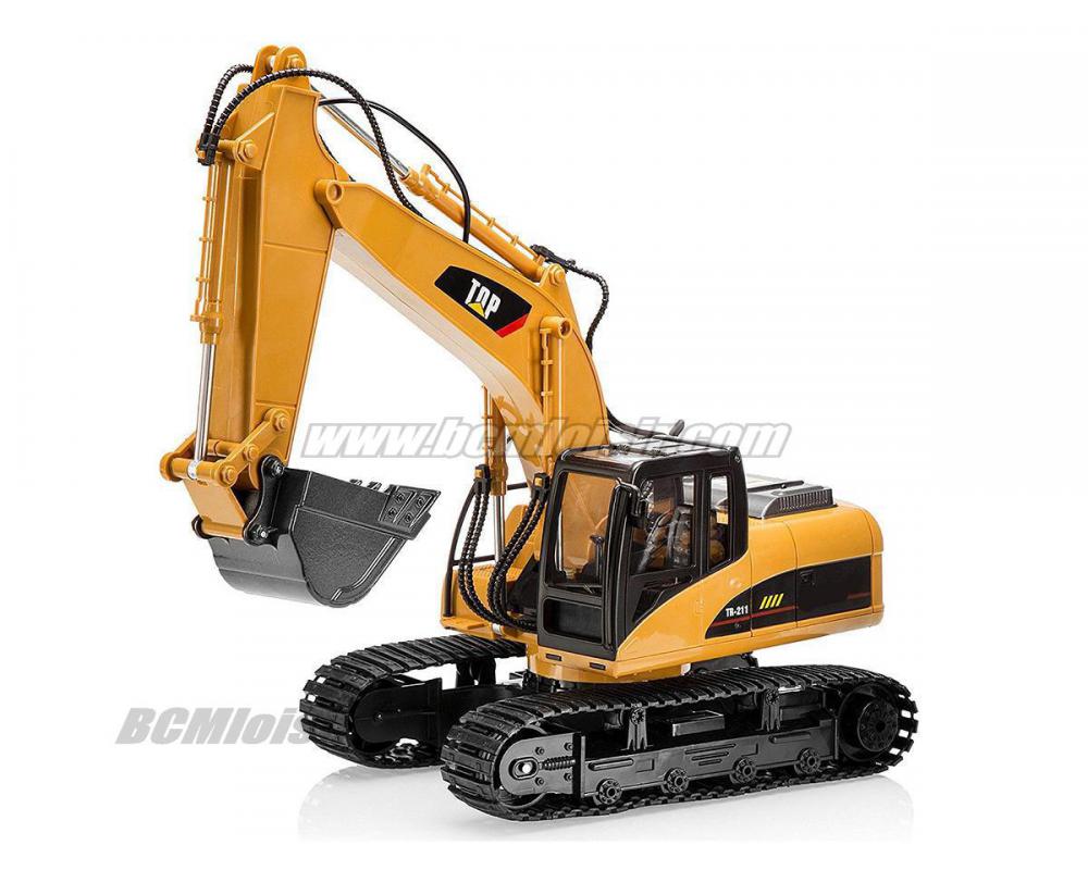 Réplique radiocommandée échelle 1/14 d’une pelleteuse de travaux publics.