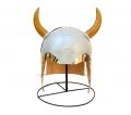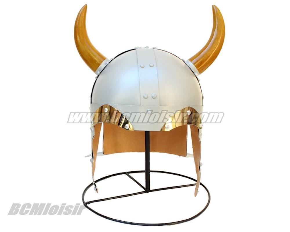 Casque Gaulois Metal et Cuir avec Cornes et protection de nuque ainsi que son support - 911812