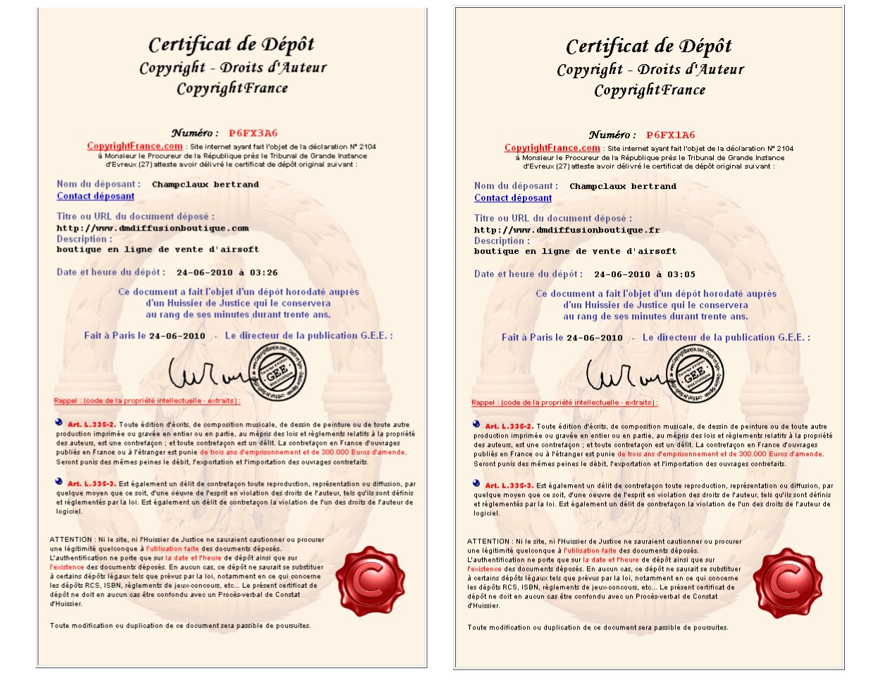 Ce site internet a fait l'objet d'un depot Copyright © 2010 , déclaration n°2104 à Monsieur le procureur de la république prés le tribunal de grande instance d'Evreux.