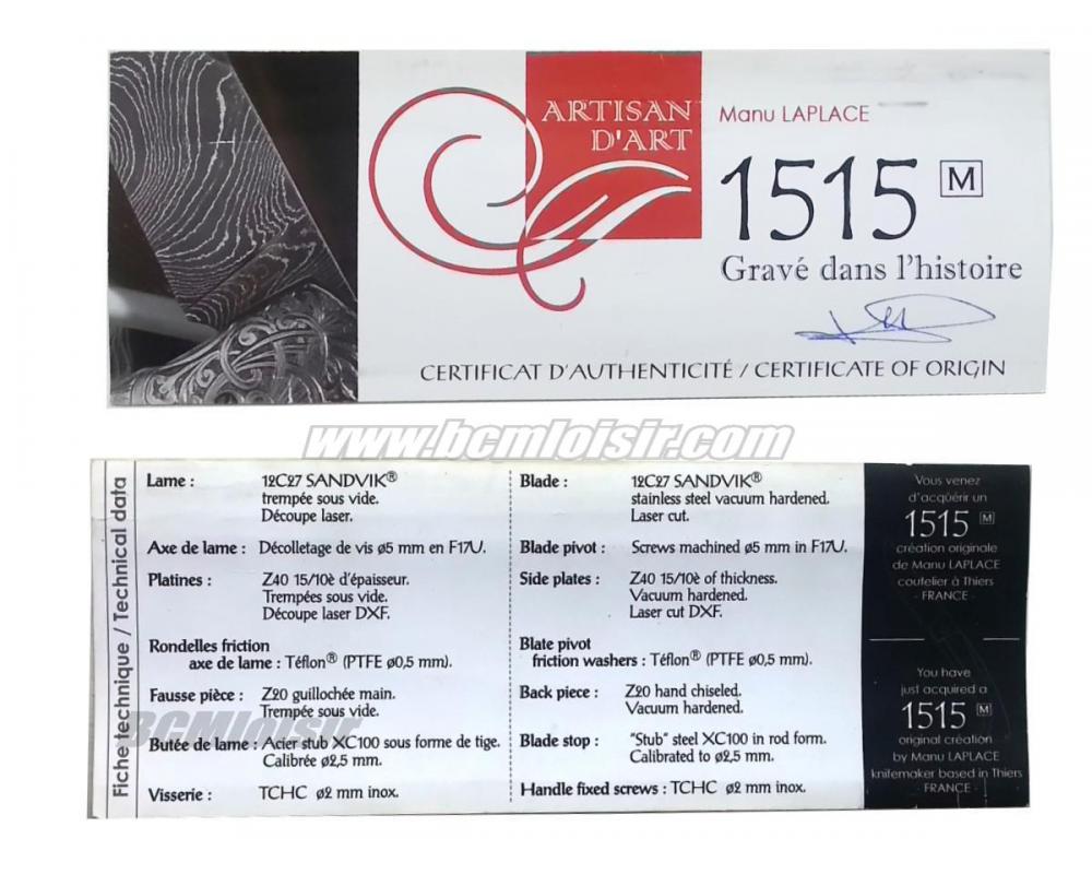 Superbe couteau pliant livré en coffret avec un certificat d'authenticité Manu Laplace