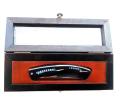 Il est vendu dans un magnifique coffret en bois avec sur le dessus une petite vitre pour pouvoir admirer l'oeuvre.