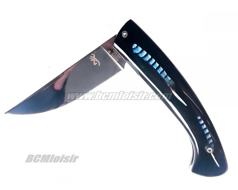 Sur la lame est gravé " Browning " et lorsqu'on ouvre celle ci dans le manche il y a aussi une gravure Browning ainsi que le numero du couteau.