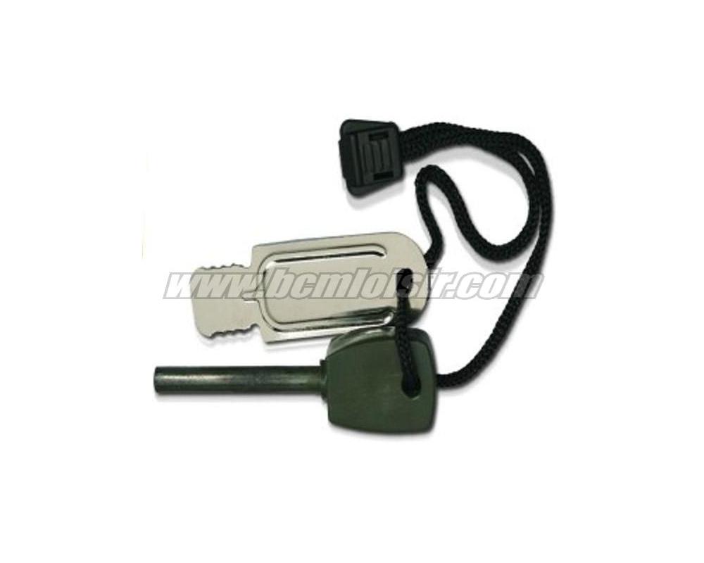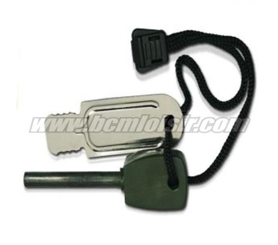 permet d'allumer un feu par tout les temps par frottement de la languette metallique sur la pierre