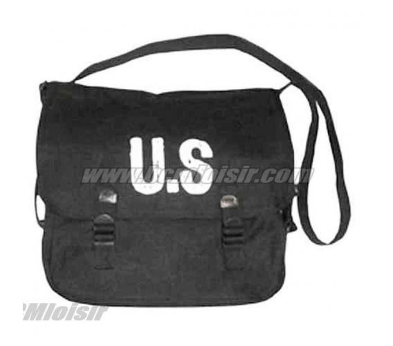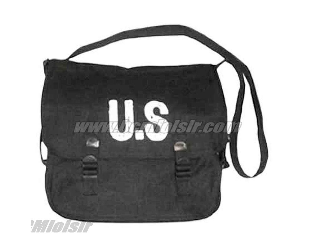 Musette en toile epaisse de couleur noir avec marquage US en blanc