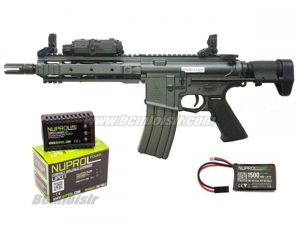 Pack M4 Raid K Urban Grey VFC by BO Manufacture AEG 14,5 pouces Livré avec Batterie Lipo 1500 Mah et Chargeur Lipo Nuprol - LE4014
