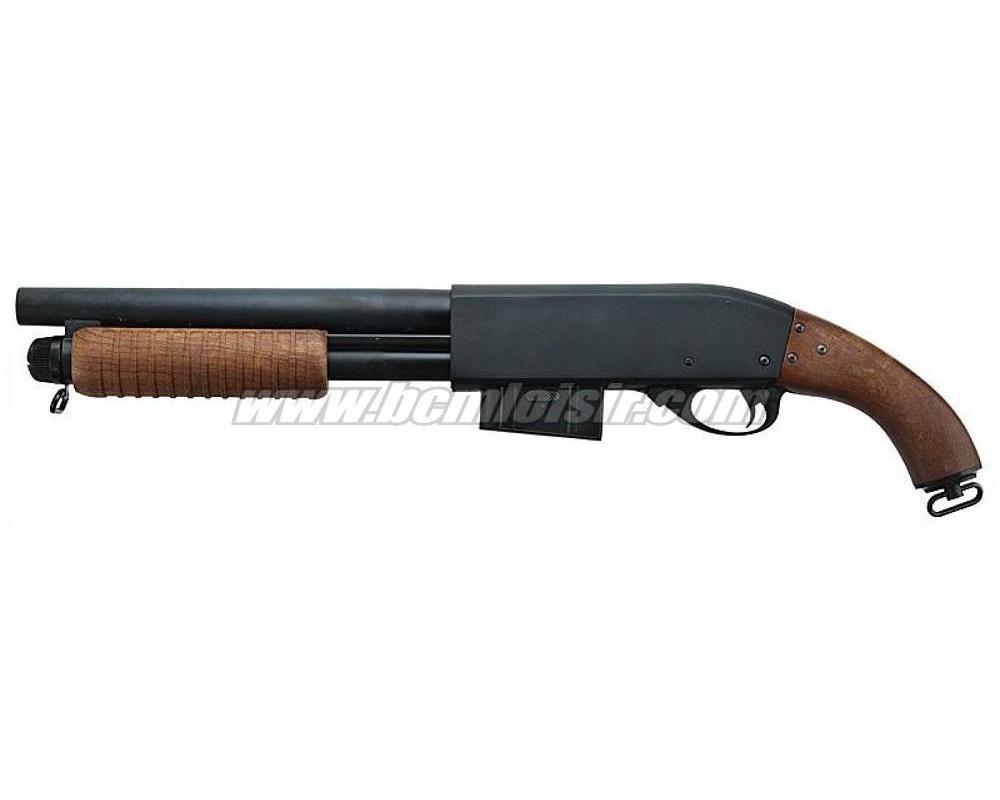 Superbe replique airsoft du celebre shotgun. Elle est entierement en metal avec le garde main et la crosse imitation bois
