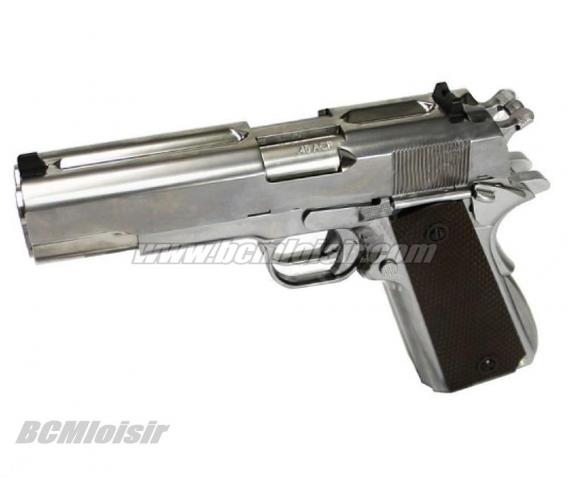 WE 1911 Dueller Double Canon Full Metal Silver Gaz Blowback - 7727