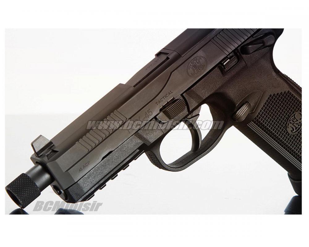 La culasse est en metal gravée du logo FN ansi que de son calibre : 45 ACP, sa poignée ergonomique avec un grip remarquable procure une tenue en main irreprochable renforcée par le grip du pontet.