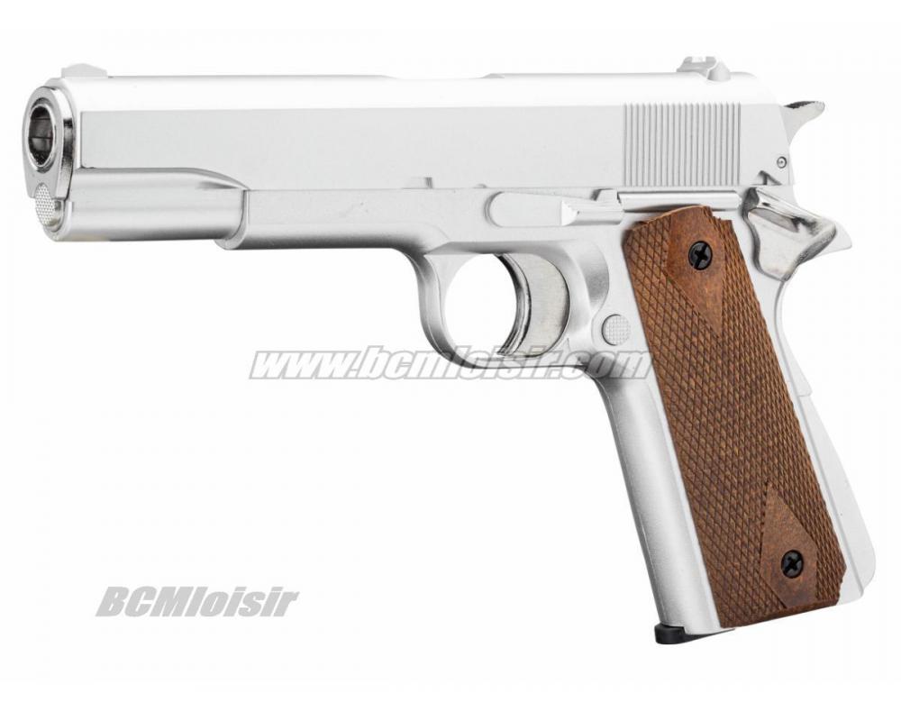 Replique Colt 1911 Silver GNB Gaz 1 Joule - PG5501