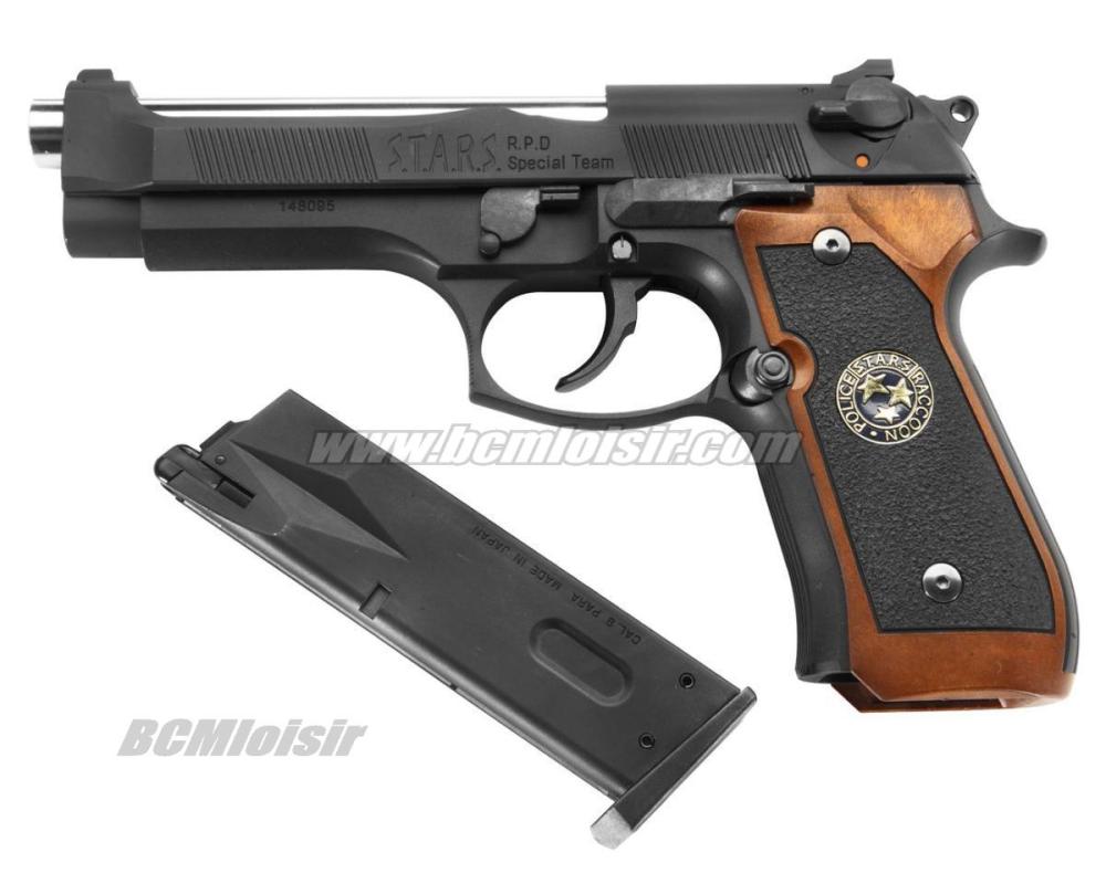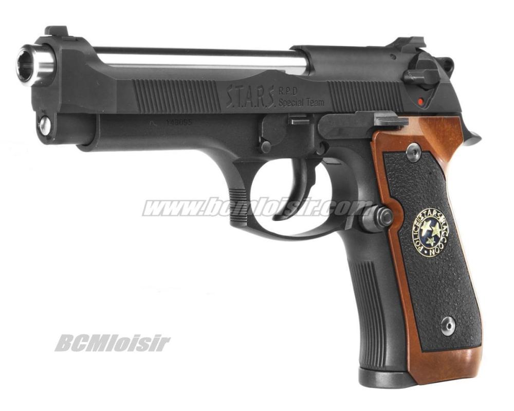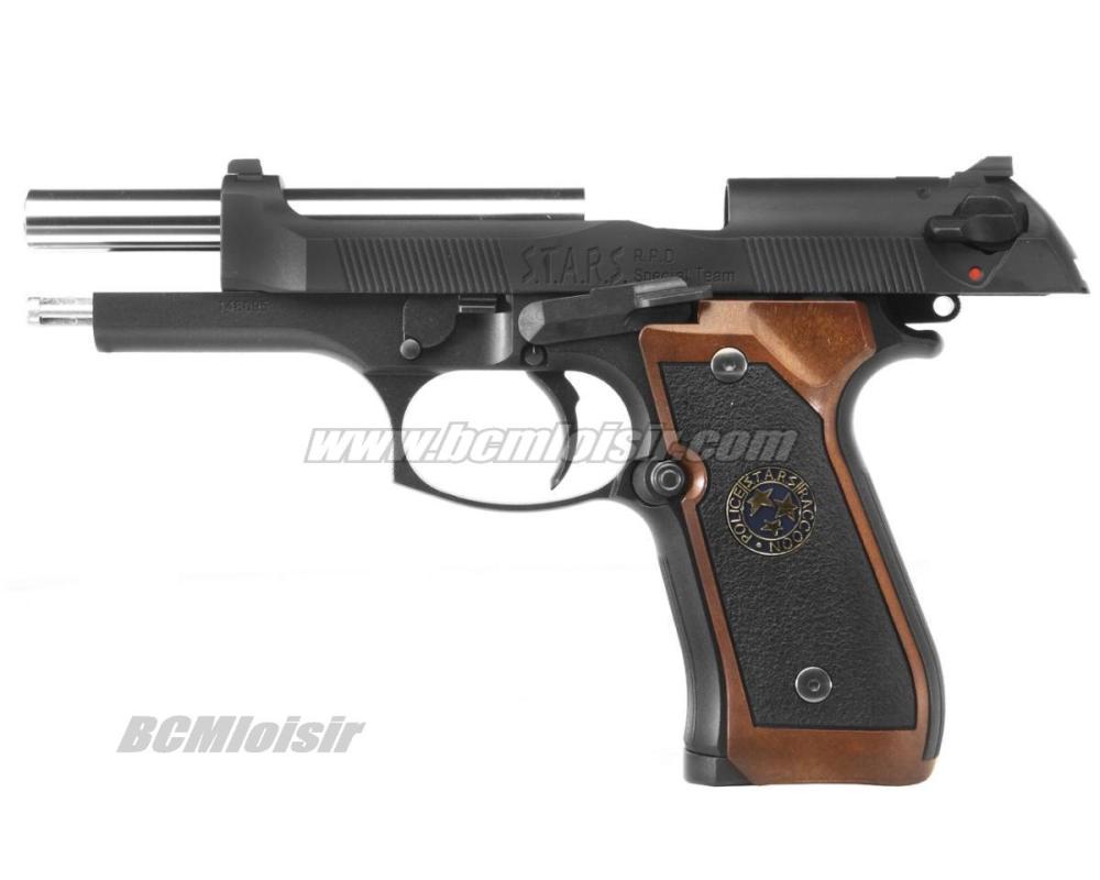 Marquages S.T.A.R.S sur la culasse et Raccoon Police sur les plaquettes de crosses.