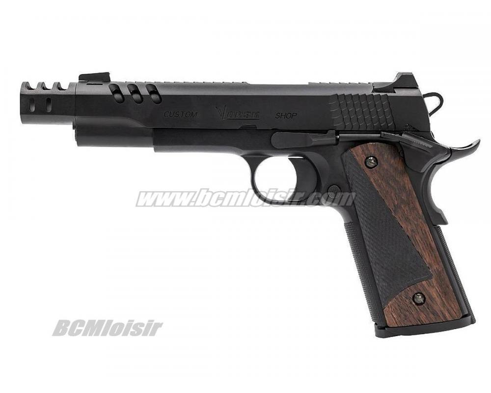 Les grips sont en bois/polymère, ce qui offre un design saisissant. Enfin, une queue de détente pleine est utilisée pour la première fois sur un modèle VORSK.