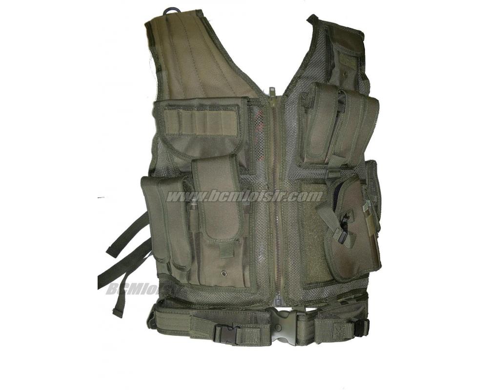 Veste tactical olive 8 poche holster + ceinturon - 911301