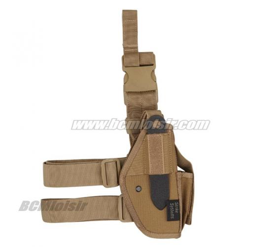 Un étui cuisse entièrement réglable, avec pochette mag.