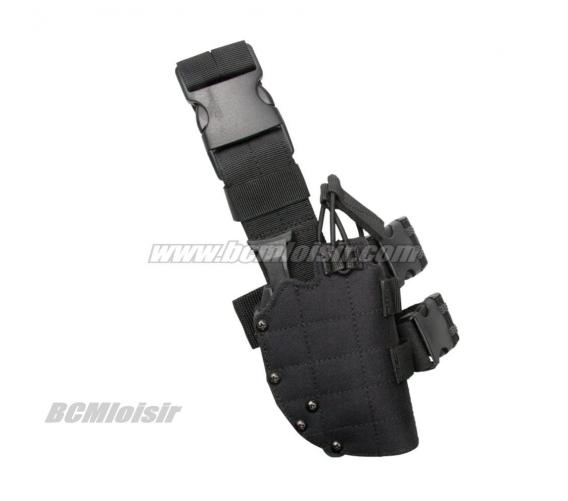 Étui de cuisse entièrement réglable, avec système de démontage rapide. La sangle réglable en hauteur rigide avec boucle à déclenchement latéral, vous permet de placer l'étui exactement dans la position idéale pour un tirage rapide. Un élastique sangle de retenue supplémentaire maintient le pistolet en toute sécurité dans l'étui pendant les activités les plus rigoureuses. La libération de côté boucles vous permet de prendre ou désactiver rapidement.
