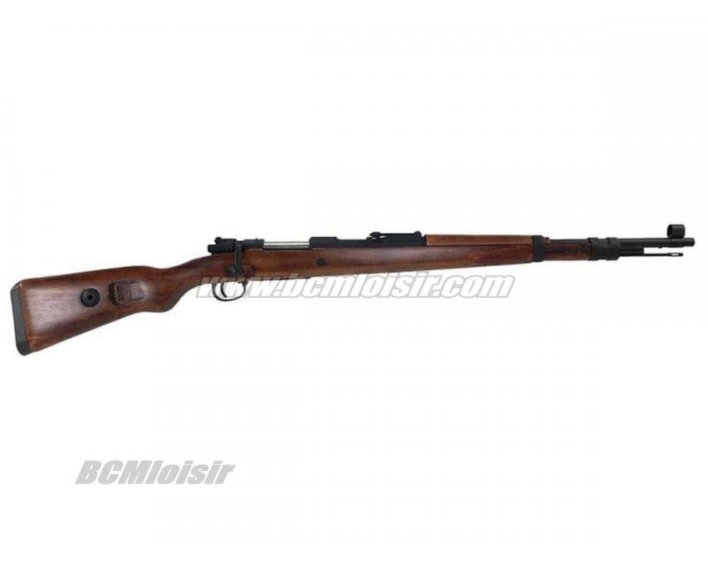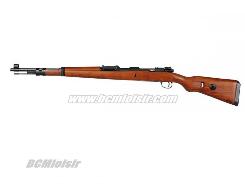 La Karabiner 98k ( k pour kurtz, version courte ) est un fusil à verrou allemand chambré en 7.92x57mm . Il fut adopté le 21 juin 1935 comme arme de service par la Wehrmacht. Ce fut l'arme standard la plus commune des troupes à pied de toutes les branches de la Wehrmacht, plus de 15 millions d'unités furent produites jusqu'en 1945. Il est l'évolution du G98 (Gewehr 98) utilisé pendant la Première Guerre mondiale.