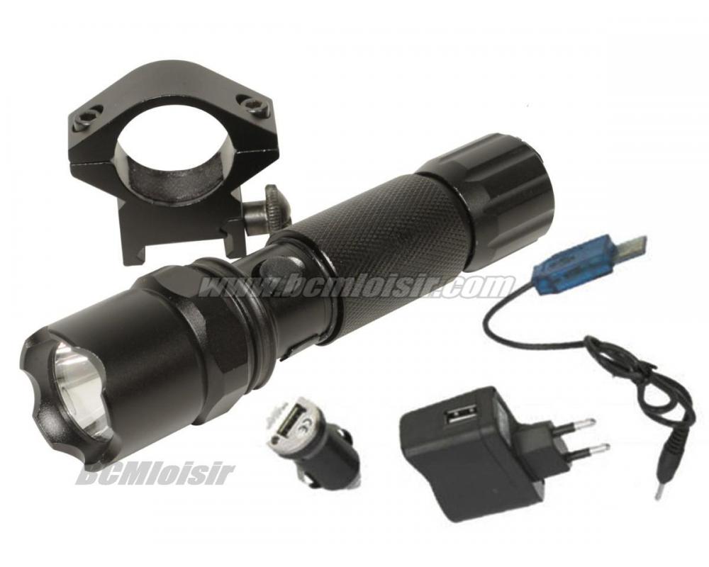 Lampe Rechargeable + chargeur allume cigare + chargeur 220V+ cable USB + collier 25,4 mm - 263927