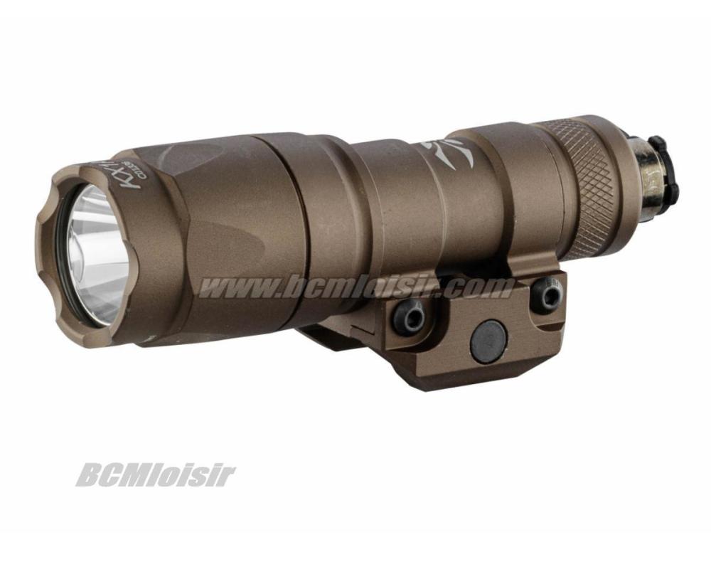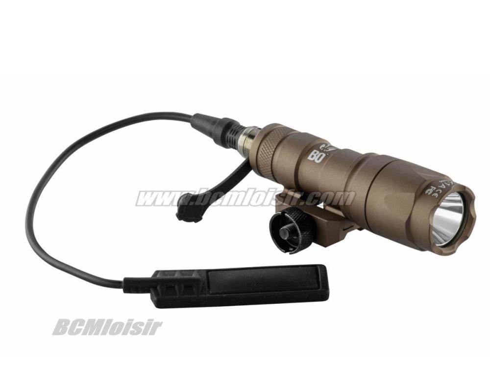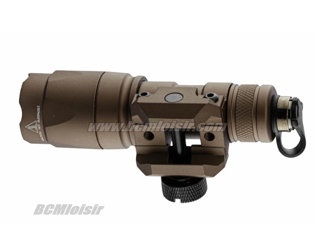 Cette lampe possède un montage amovible pour rail Picatinny, et l'allumage fonctionne par pression sur le pad de l'interrupteur déporté, qui peut être positionné ou bon vous semble, et qui remplace le bouton à l'arrière de la lampe.