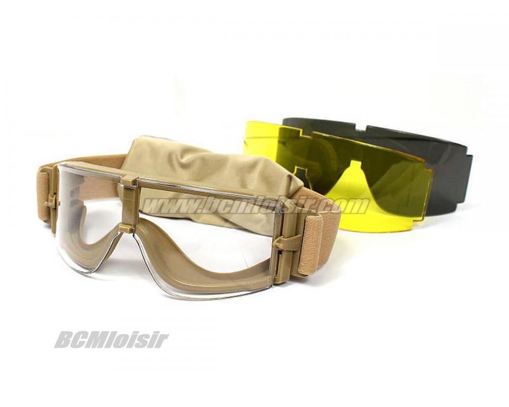 Masque de Protection de Combat Type 5 Tan S&T 3 Ecrans ( noir, transparent, jaune ) avec Etui - ST44402