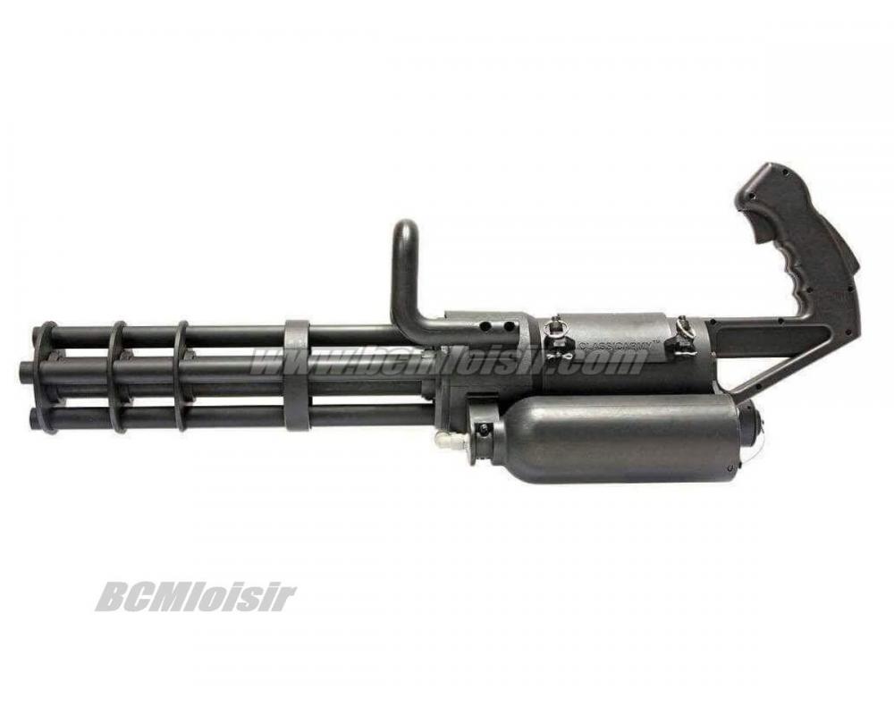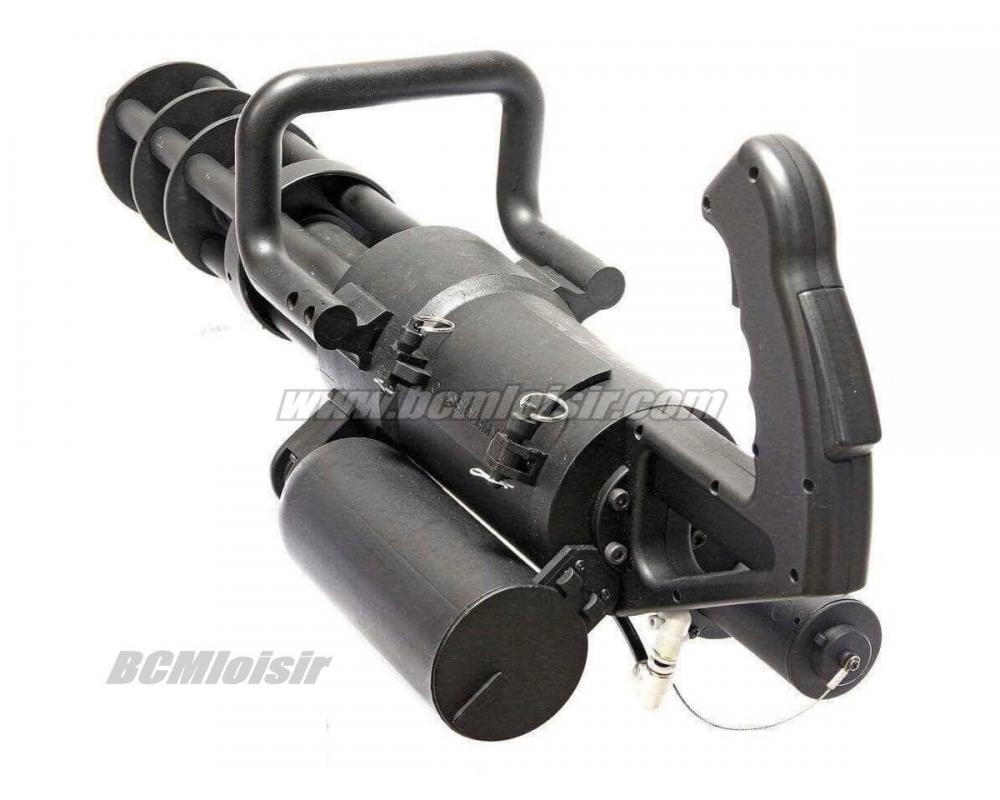 Magnifique réplique pourvue d'un moteur faisant tourner de maniere rotative 4 canons. Sa cadence de tir est impressionnante !