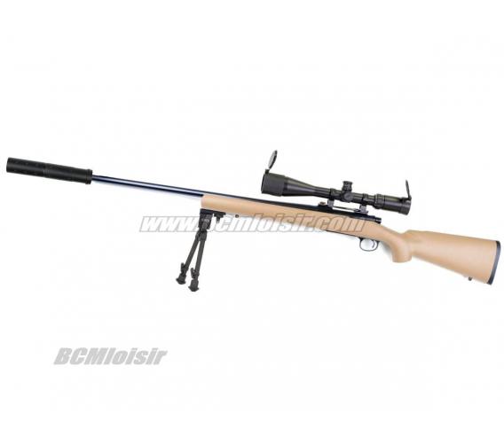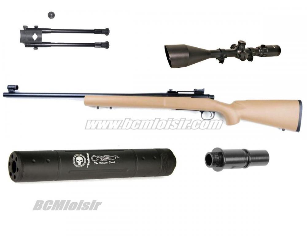 Pack Sniper M700 SA1G Gaz Sniper KJ Works contenant fusil, lunette de visée, adaptateur silencieux, silencieux, bipied - 600709P
