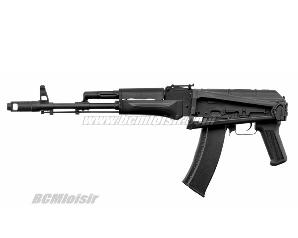Modèle Economique avec corps polymer de la célèbre AKS74N en version courte, avec sa crosse repliable. Equipée d'origine d'une Gearbox V3 en métal avec engrenages en acier sur roulements de 8mm et changement de ressort rapide.