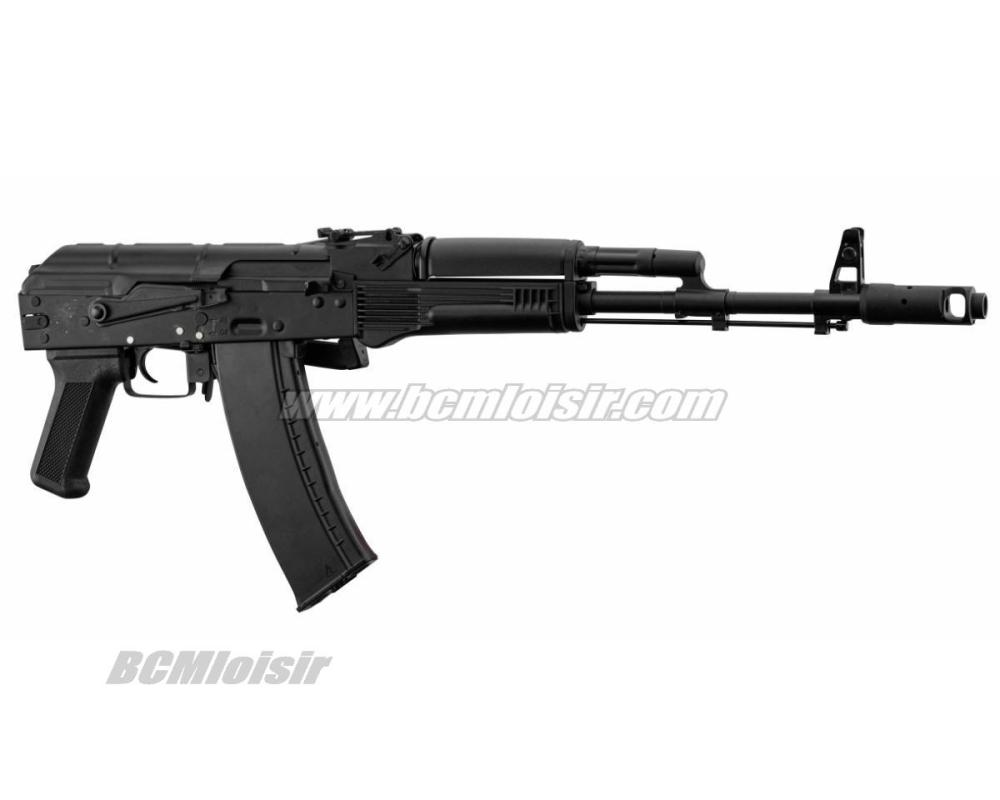 Modèle corps métal de la célèbre AKS74 en version longue, avec sa crosse repliable en métal et son garde-main en polymère.