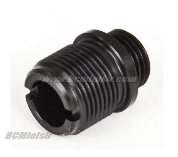 cet adaptateur permet d'installer des modérateurs de son (silencieux) 14mm négatif sur les répliques WE.