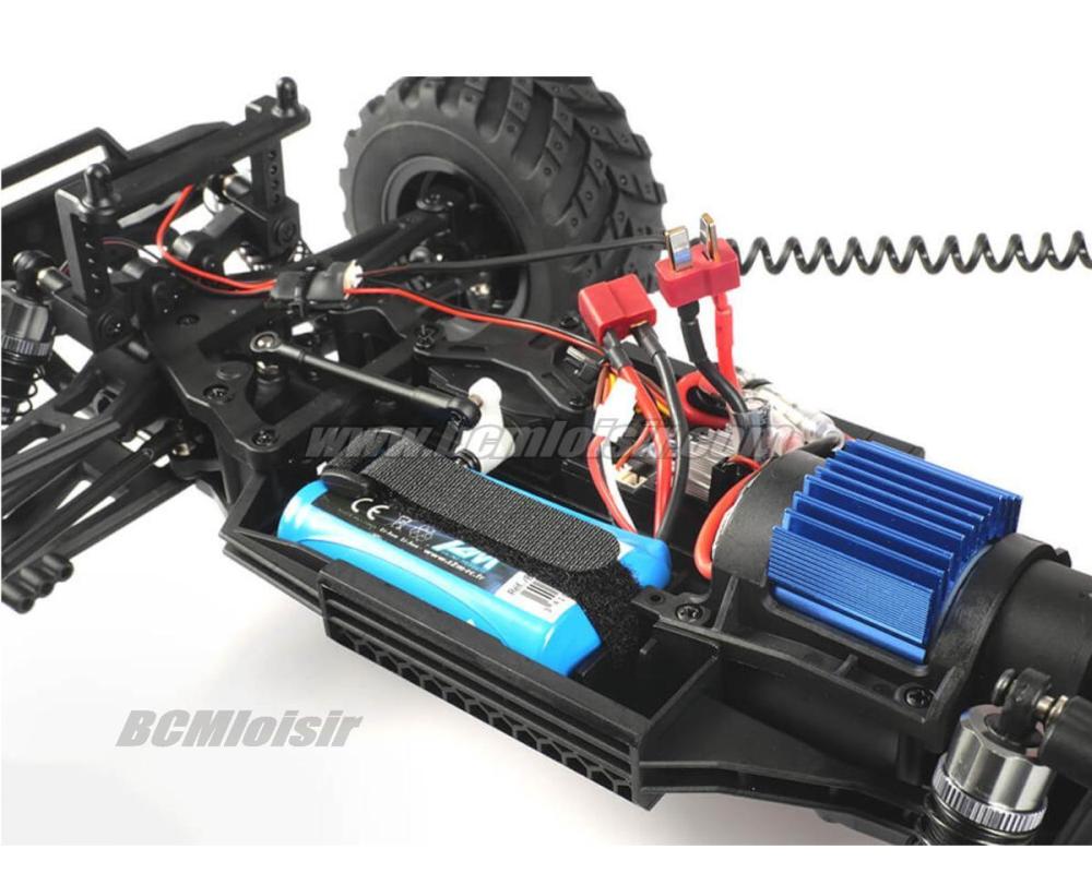 • Système de radiocommande 2,4GHz 3 voies (2 voies proportionnelles + 1 voie allumer/éteindre les Leds).